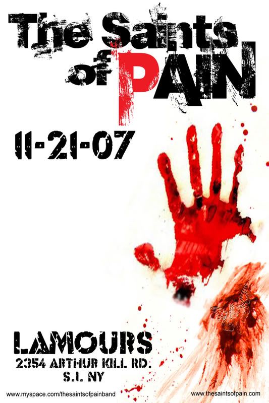 Wed. night I got to perform with some of the best people in the biz. As you know from our posts we opened for SEVENTH VOID & CARNAVORE. These guys are the real deal and if you missed the show then you missed a true EVENT. SEVENTH VOID features Kenny and Jonny (TYPE O) is a great mix of metal and true rock. Closing the night was CARNIVORE and if you haven't seen these guys then you haven't seen hardcore at it's finest. Pete Steele (TYPE O), Steve Tobin, Paul Bento, (METAL HEATLTH ASSC.) and Joey Z (L.O.A. and STEREOMUD) (Joey also recorded and mastered our forth comming album) come together to belt out the best in hardcore rock. We in the SAINT OF PAIN got the chance to share the stage with these monsters of rock and we we're treated as friends and colleges. Even the arrival of Staten Island's finest (just there to make sure all the permits and licencing were in order and after thier task was compleat departed without incedent) could'nt dampen the the crowds spirits.The fans at LAMOURS are some of the best people we have had the honor to play for.